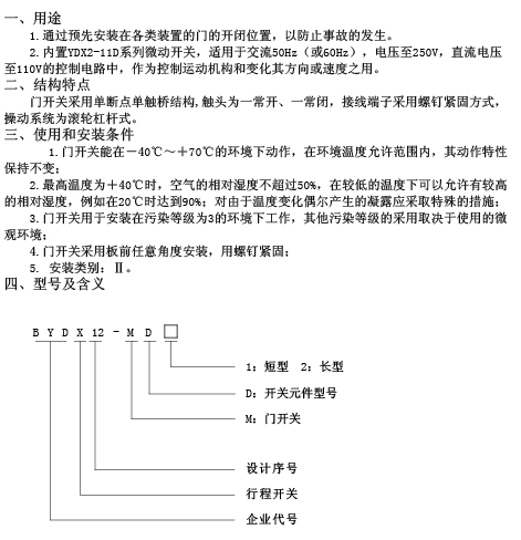 产品名称:BYDX12系列门开关