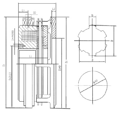 2、 此离合器适合于水平安装使用,安装好的离合器应保证摩擦片呈自由状态,并能轻便地沿花键套和联结移动;