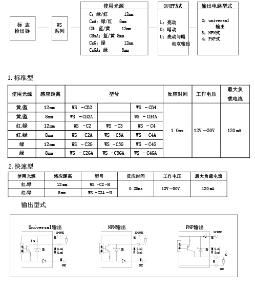 WS系列标志检出器广泛用于各种需要以颜色为标志,进行区分处理的自动化装置,如包装机械,印刷机械等。其特点如下: