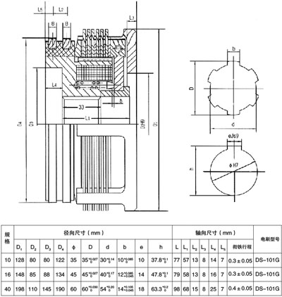 3、 此种离合器适合于水平安装使用,安装好的离合器应保证摩擦片呈自由状态,并能轻便地沿磁轭和联结方向移动;